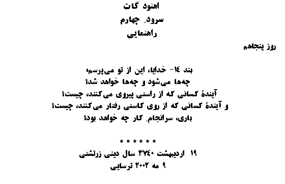 USHT�! We are radiantly happy to announce that our both sites -- www.zoroastrian.org and www.zartoshti.org are in operation and are updated on daily basis. We are remodeling them and the two will carry many new features, including a Discussion Panel.